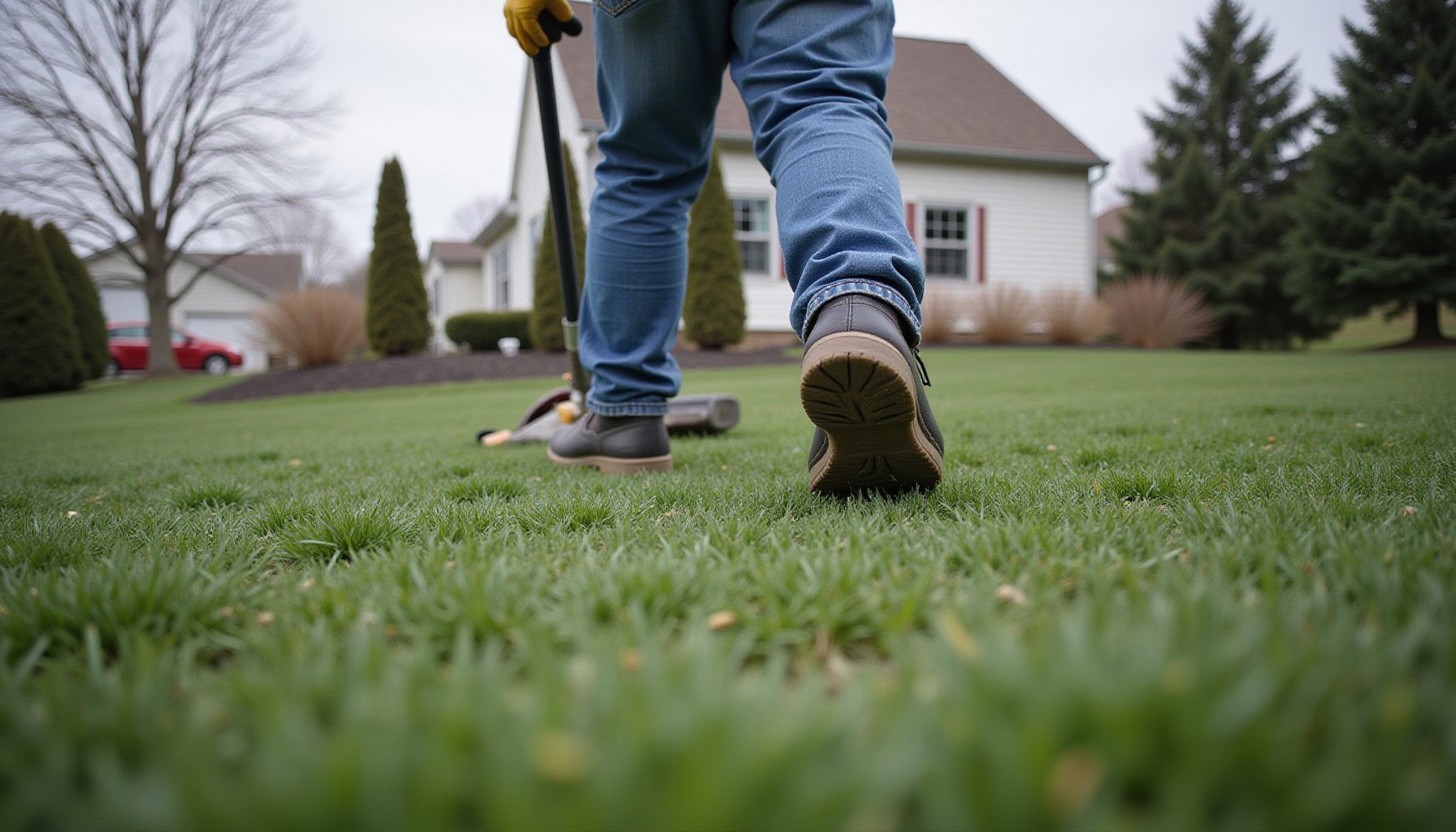 Address pet spots immediately by thoroughly watering the area to dilute urine concentration. For compacted areas, core aerate to improve soil structure.